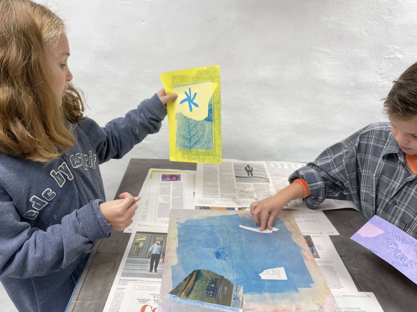 Kids Workshop "Monoprinten" voor (groot)ouder en (klein)kinddoor Rhodé Tavenier & Peter Minnee