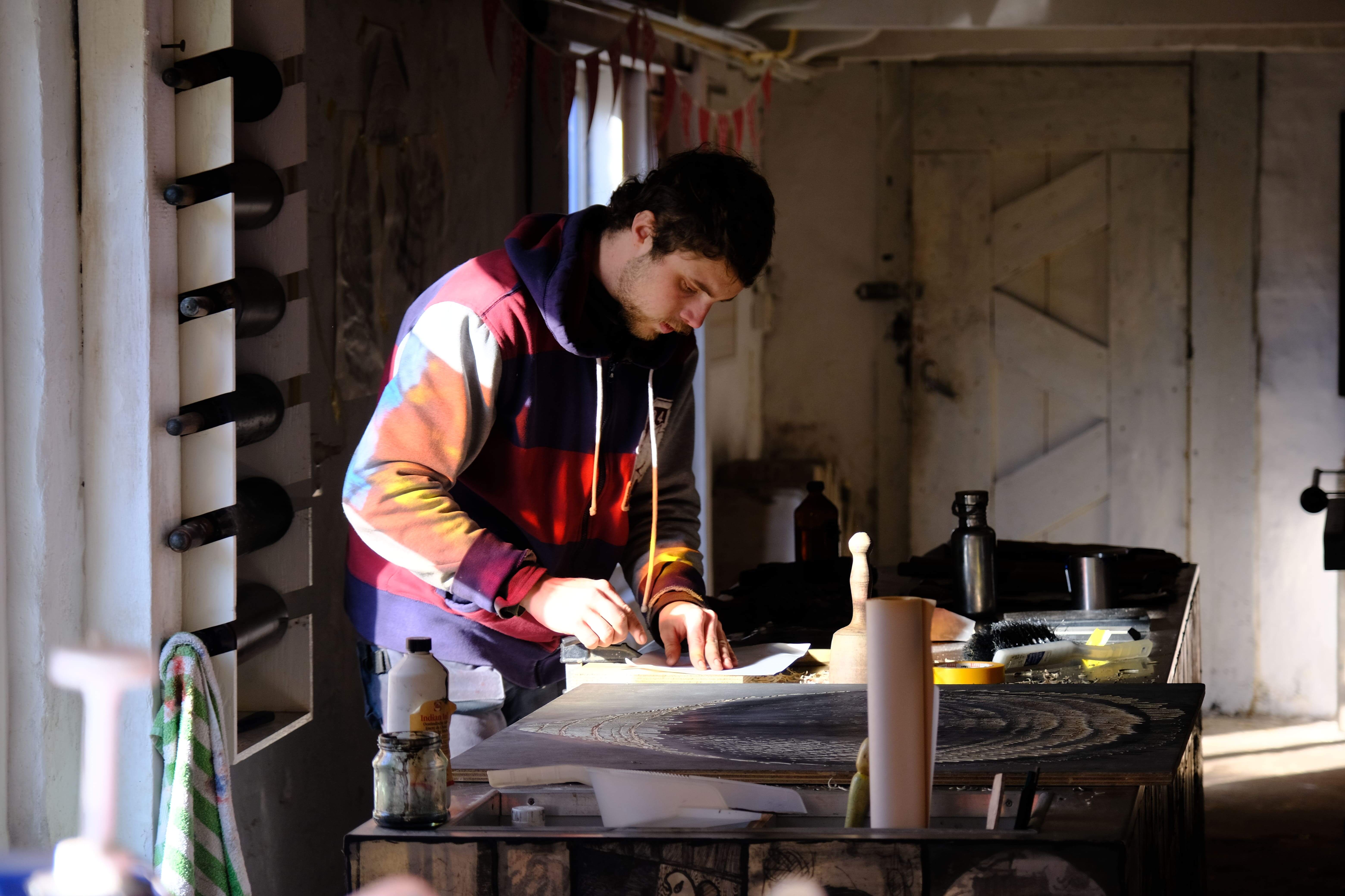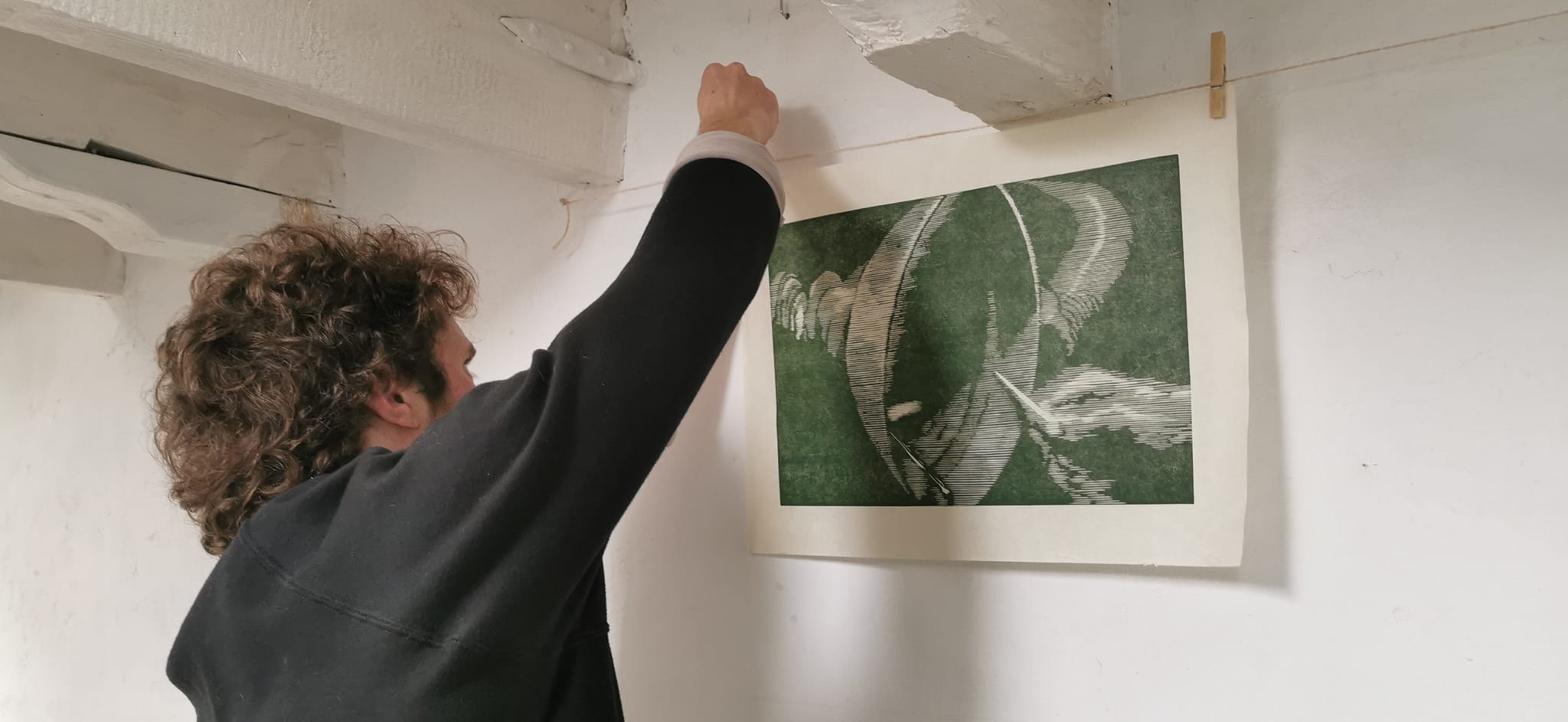 Charlie Ash was de eerste (Britse) Artist in Residence van De Rode Schuur. Hij is een zeer getalenteerd graficus, maakt de meest mooie houtsneden en afdrukken en keert gelukkig regelmatig terug naar De Rode Schuur om aan zijn houtsnijkunst te werken of om workshops te geven.Website Charlie