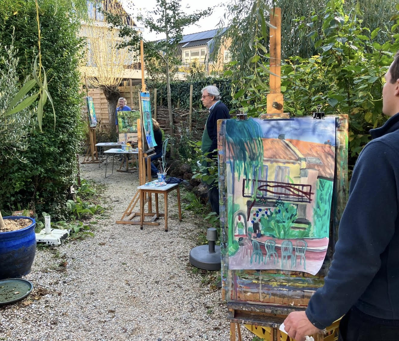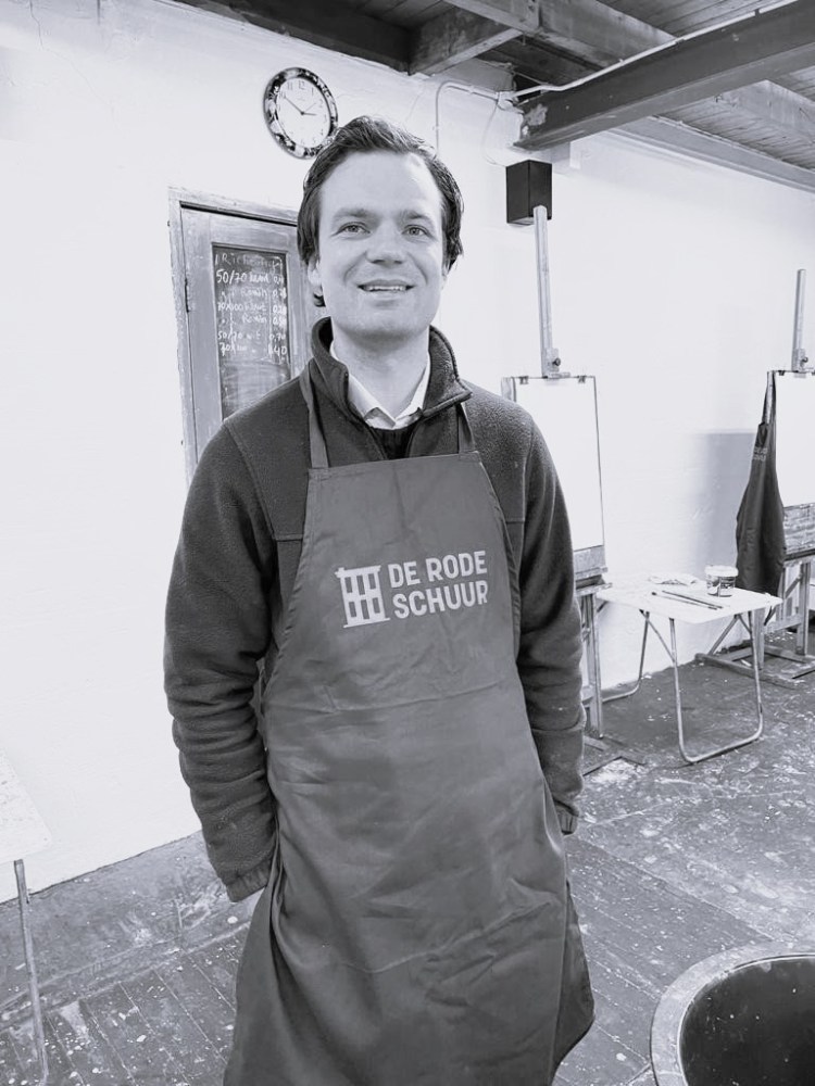 Kunstenaar Wiebe Ruitinga heeft al meer dan 10 jaar zijn atelier in De Rode Schuur, hij is kunstschilder en beeldend kunstenaar. Wiebe maakt schilderijen die gebaseerd zijn op het idee dat je overal een schilderij van kan maken als je maar goed kijkt. Wiebe heeft gestudeerd aan de Koninklijke Academie van Beeldende Kunsten en volgt nu de Wackers academie.In juni 2024 exposeerde Wiebe in De Rode Schuur met expositie 'Seeing and Beings'. Voor deze serie ‘Seeings’ schilderde hij bloemen op een manier die in het grensgebied valt tussen abstractie en de zichtbare waarneming. Zijn serie ‘Beings’ bestaat uit beelden die ‘zijn wat ze zijn’ zonder naar iets anders te verwijzen. De beelden zijn ontstaan door verschillende gebruikte voorwerpen op basis van intuïtie bij elkaar te voegen. Hierbij uitgaande van hetzelfde principe dat alles kunst kan zijn.Instagram Wiebe