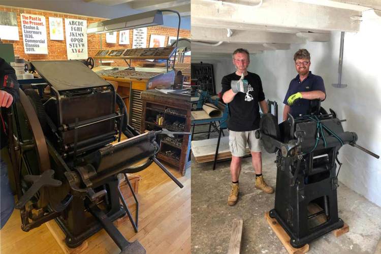 De lithopers die stopte met draaien in Ruinen is nu bijna twee jaar later weer in gebruik in Noordwijk in de grafische werkplaats van De Rode Schuur, waar hopelijk nog heel veel mooie grafische kunst op gemaakt gaat worden.