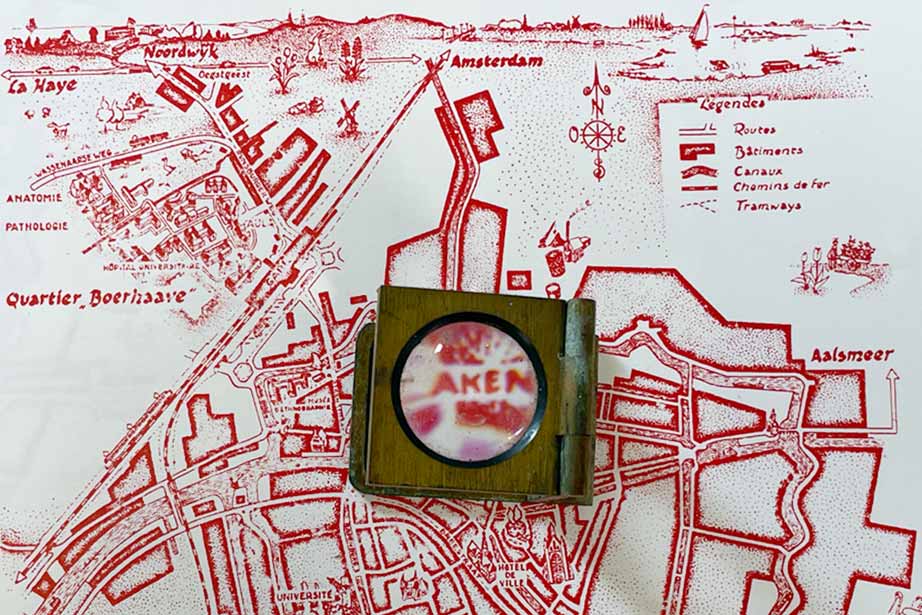 Mijn naam is Job Aarents, Van 1993 tot 2019 was ik Anatomisch preparateur aan het Anatomisch Laboratorium van het LUMC. Toen  wij in 2006 verhuisden naar een nieuw gebouw, waar veel minder ruimte beschikbaar was dan in de oudbouw, moest er rigoureus opgeruimd worden in een tamelijk korte tijd. Hetgeen betekende dat er hier en daar, door tijdsdruk, wel eens iets te snel in de afvoer container belande. Zo kwam het dat ik in het voorbijgaan in een oogwenk iets leuks dacht te zien in genoemde container. Het bleek een cliché te zijn, maar ik kon niet direct zien waarvan. Een vermoeden had ik wel, namelijk de stad Leiden maar meer ook niet. Ik heb voor de zekerheid toestemming gevraagd aan de toenmalige Hoogleraar of ik het mocht meenemen, ik kreeg haar toestemming.