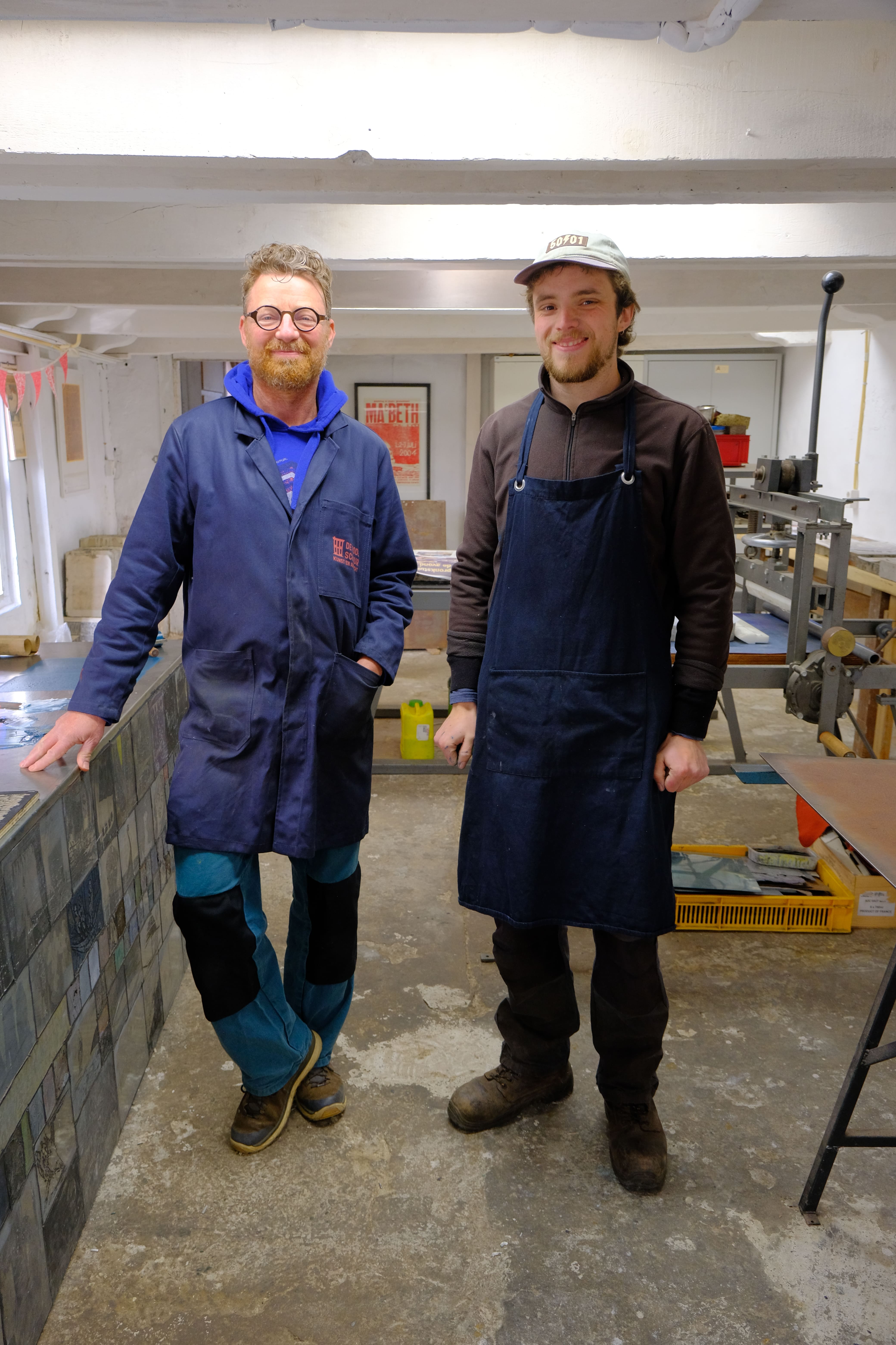 Rhodé en Peter werken met de polymeermachine.